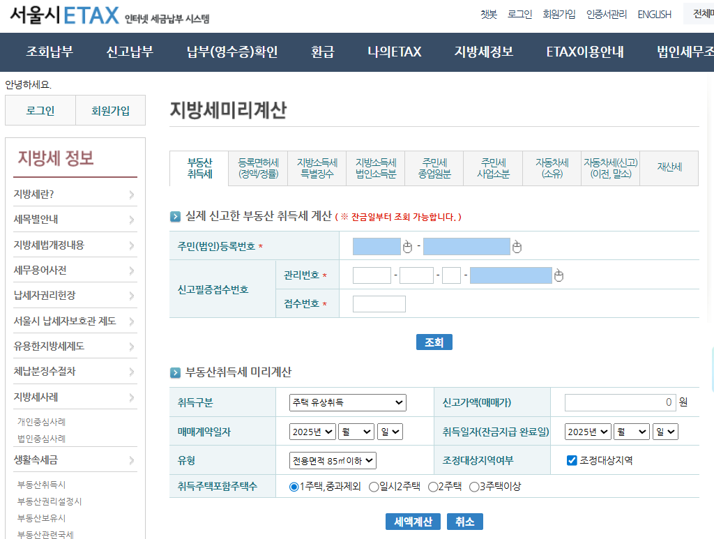 취득세·등록세 계산에서 가장 신뢰할 수 있는 도구는 위택스(Wetax)의 ‘지방세 미리계산’입니다.