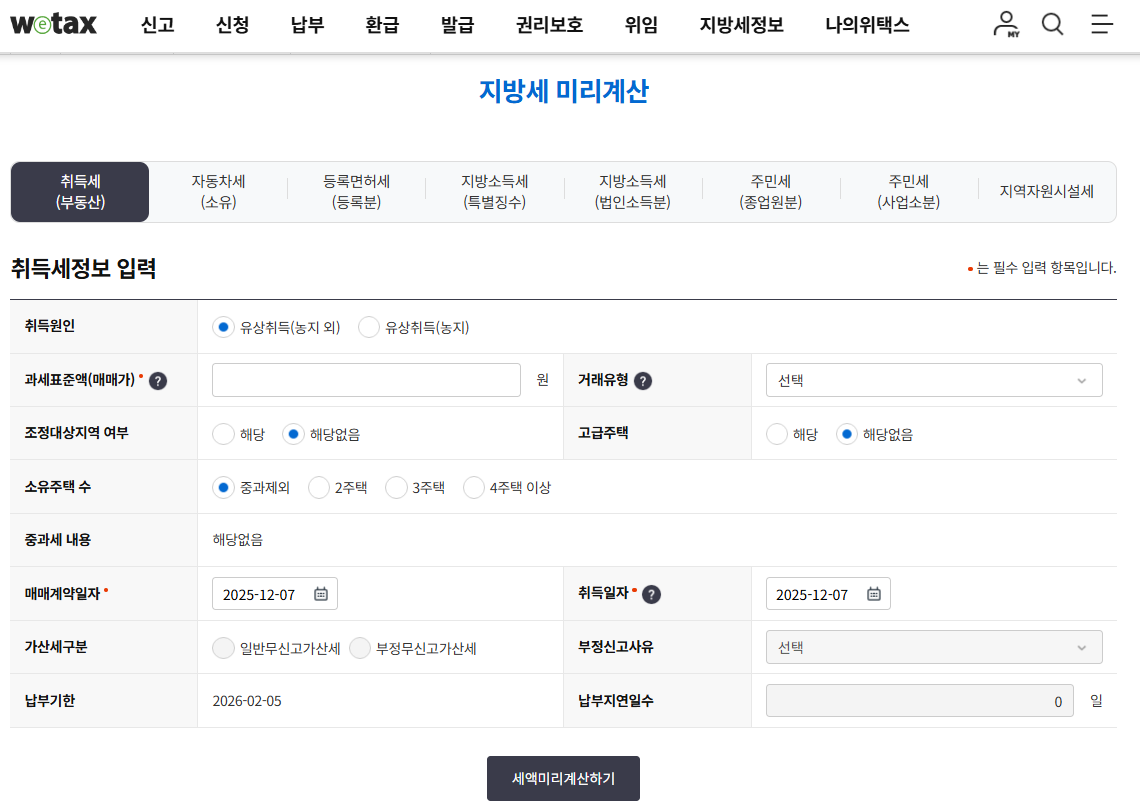 취득 직전에는 반드시 위택스 계산 결과를 확인하는 것이 좋습니다.
