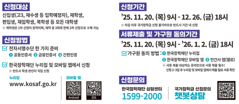 또한 고3·재수생 등 입학예정자도 대학 합격 여부와 관계없이 1차 기간에 반드시 신청해야 등록금 고지 시 우선감면 적용이 가능합니다.